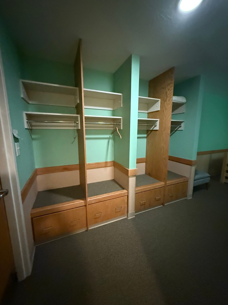 The Main House Lodge and adjacent Sleeping Wing offer bunkhouse styles rooms in single to quadruple occupancy with shared and private bathrooms. Each room has a desk, private bathroom, lamps, bunk style beds, alarm clock, and locker style cubbies for personal storage.